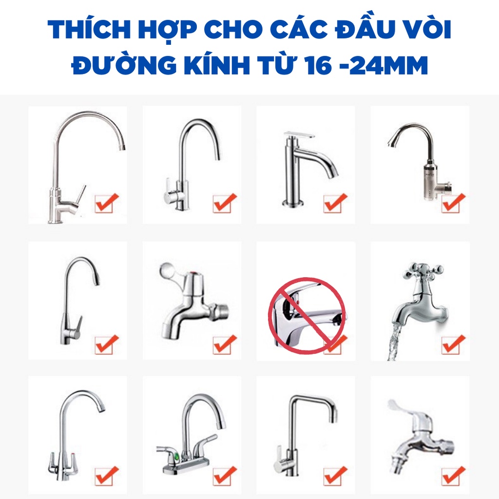 - Thông Tin Cảnh Báo : Thích Hợp Cho Các Đầu Vòi có Đường Kính Từ 16mm - 24mm