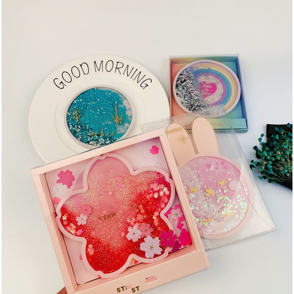Miếng lót ly Starbucks làm từ chất liệu Silicon và nhựa Mica, bên trong có kim tuyến bắt mắtDùng để lót ly, cốc tránh việc trầy xước các ly dễ trầy