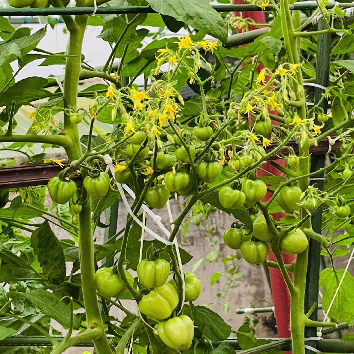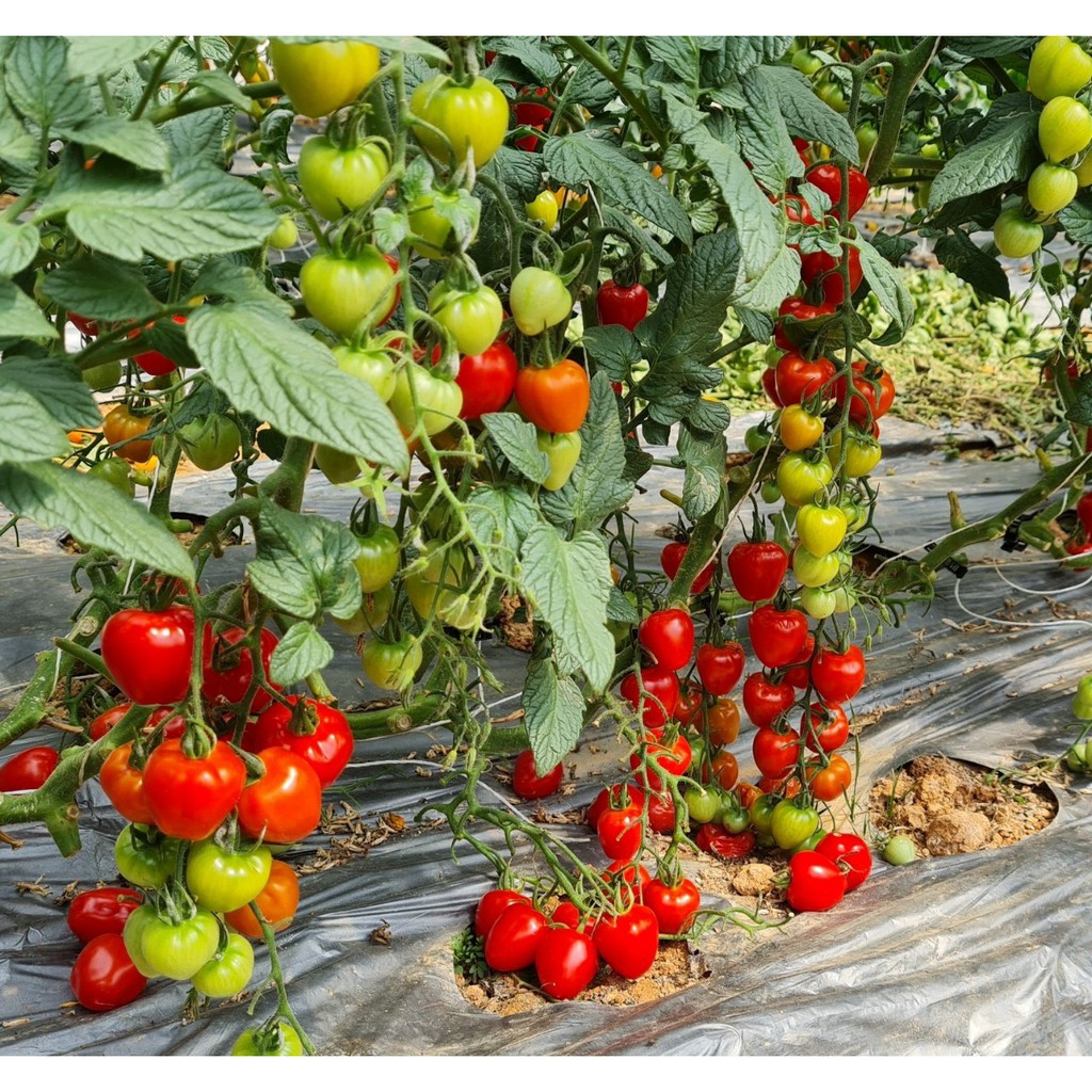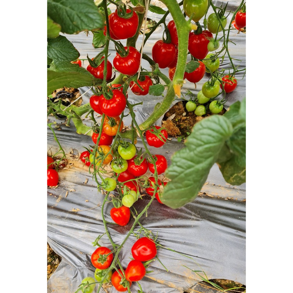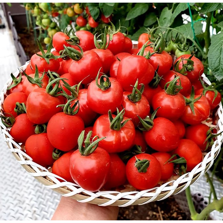 🌱 Đặc tính: quả màu đỏ tuơi, rất ngọt và thơm, không bị đậm mùi cà chua, ăn sống siêu ngon. Quả ra theo chùm dây, 1 dây từ 20-30 quả, form quả giống như quả dâu. Cây thân đứng mềm, ưa nắng, chịu lạnh, không chịu được bóng râm và khô hạn, trồng ở vị trí có nắng ít nhất 7-8 tiếng/ngày