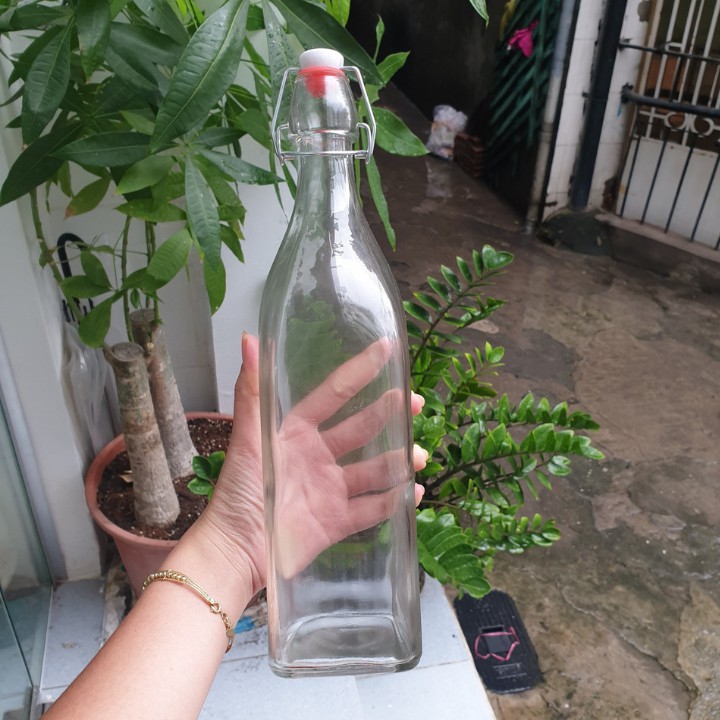 [VN] Chai thủy tinh nắp gài kín hơi 1 lít đáy vuông dùng đựng nước, kombucha, mật ong