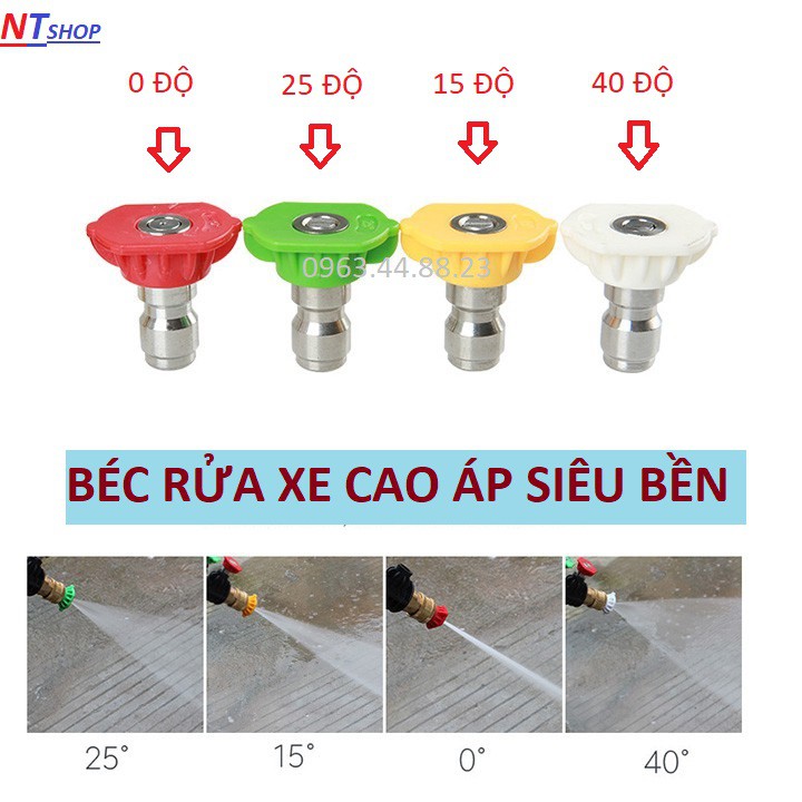 Đầu béc các góc gắn súng xịt rửa của máy rửa xe áp lực cao - Ren nối nhanh 1/4 inch