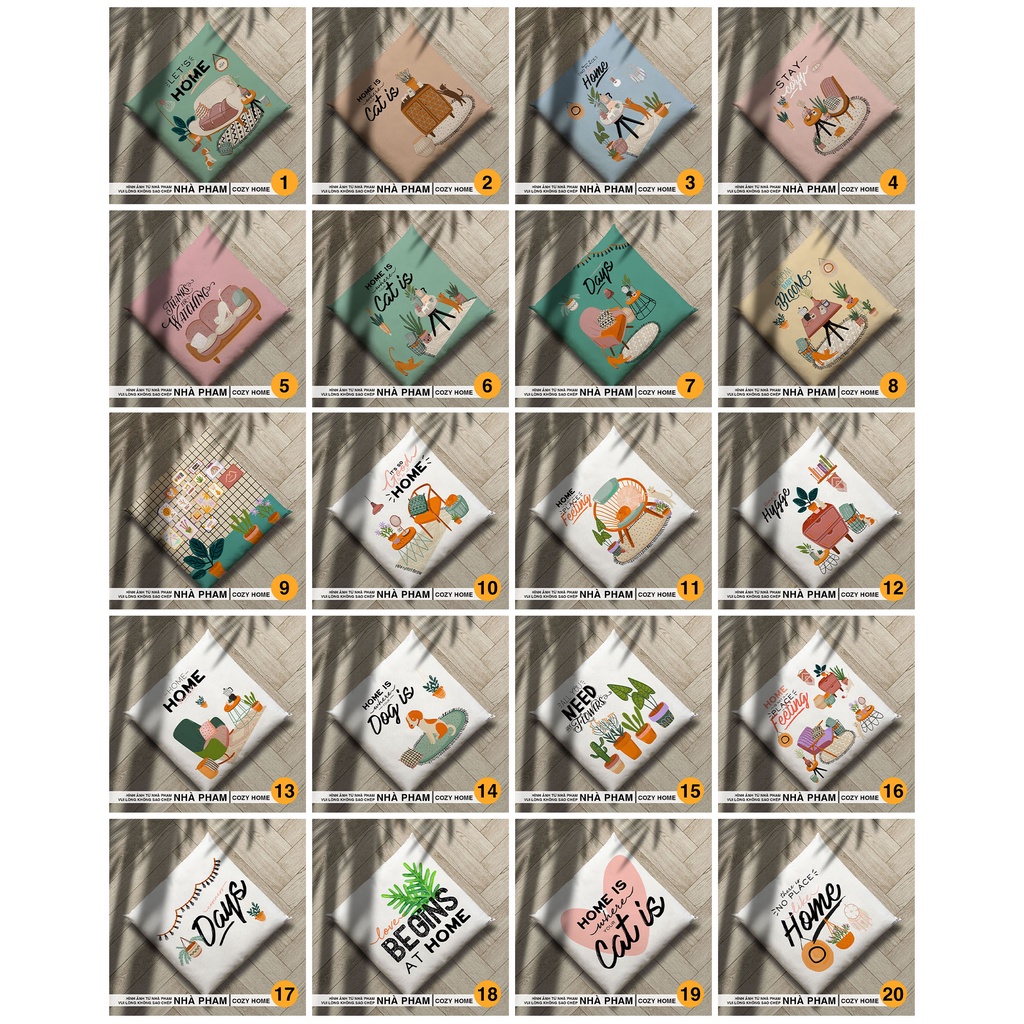 ❤️NHÀ PHAM xin giới thiệu bộ sưu tập Đệm ngồi trang trí COZY HOME (45cm) , mang phong cách tươi tắn , màu sắc làm cho ngôi nhà trở nên mát mẻ . Với chất liệu vỏ vải bố in hình 1 mặt , ruột đệm bông gòn trắng , có thể tháo vỏ ra giặt