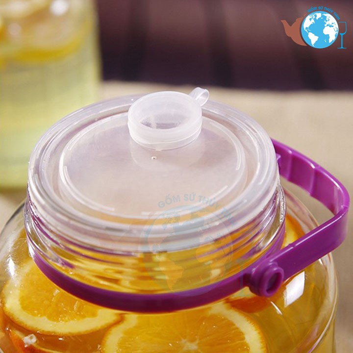 Bình Ngâm Rượu (hũ thủy tinh ngâm rượu) Thủy Tinh Quai Xách Nắp Tím(Lọ ngâm rượu thủy tinh quai xách không van 5 lít)