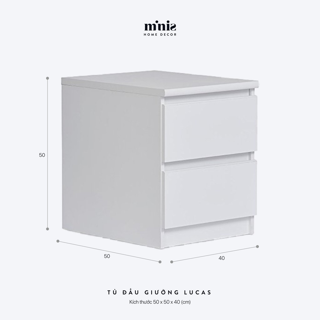 Tủ đầu giường Lucas:- Lấy cảm hứng từ phong cách hiện đại, thiết kế đơn giản thanh lịch