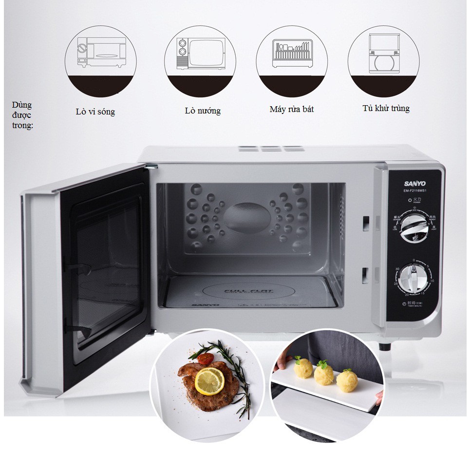 Đĩa có thể dùng trong lò nướng, lò vi sóng, máy rửa bát, tủ khử trùng nhiệt độ dao động -20*C -> 180*C