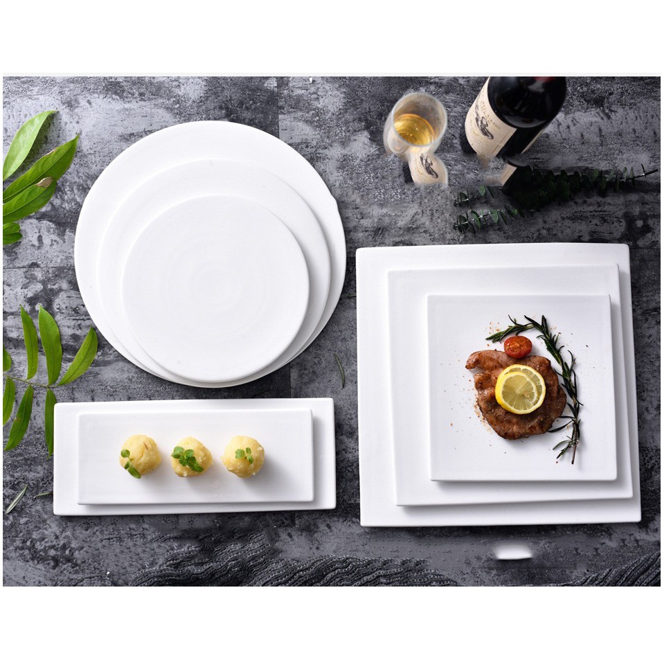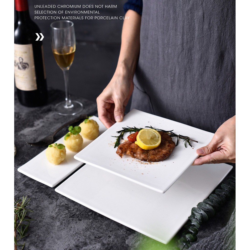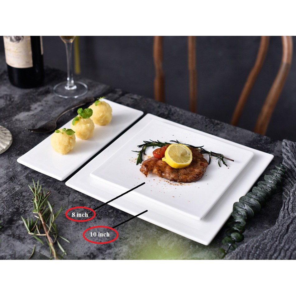 Đĩa hình vuông phẳng phong cách Châu Âu nhập khẩu cao cấp. Đĩa có chất liệu sứ trắng dầy dặn, dầy chắc và chống nóng khi sử dụng. Đĩa dùng đựng Bít Tết, Brunch, mỳ Ý, hoặc sử dụng đựng các món ăn bài trí, món Nhật sushi, món Hàn Gim bắp...đều rất phù hợp.+ Shop có sẵn size: