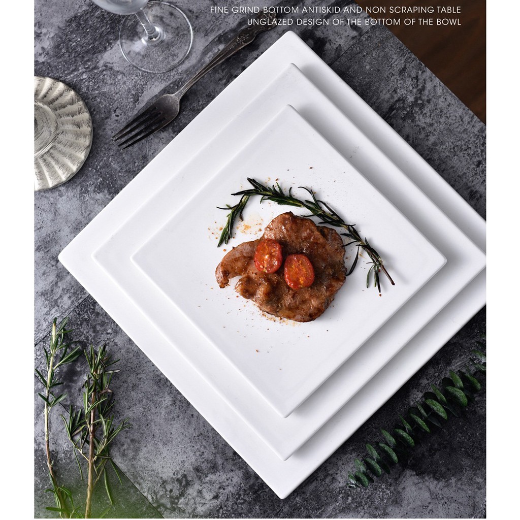 Giới thiệu Đĩa tấm phẳng vuông nhà hàng ăn bít tết brunch sang trọng
