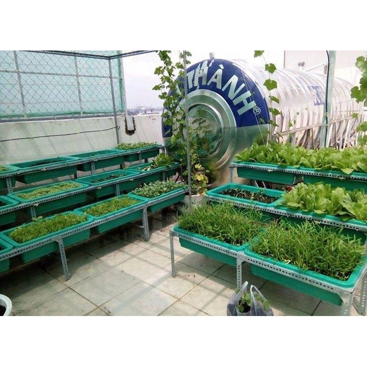 Nhà cửa & Đời sống > Làm vườn > Chậu cây || Khung kệ sắt v lỗ đa năng trồng rau sạch 3 tầng dùng cho 9 khay trồng rau 68x43x15cmCòn hàng