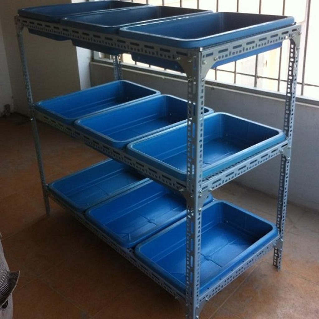 Khung kệ sắt v lỗ đa năng trồng rau sạch 3 tầng dùng cho 9 khay trồng rau 68x43x15cm