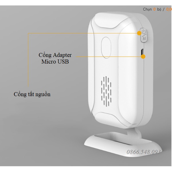 - Chuông báo không dây: dùng 3 pin tiểu AA hoặc nguồn 5V Micro USB