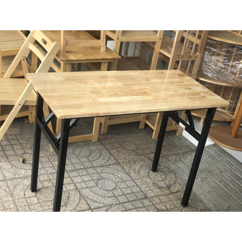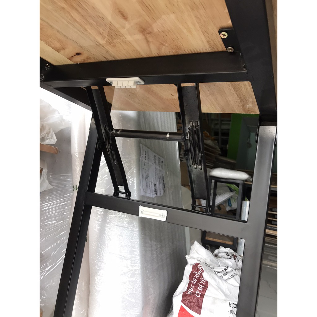 Mẫu bàn học, bàn làm việc chân xếp cao, với kết cấu đơn giản, 4 lò xo gập giúp bàn có độ chắc chắn không kém gì một chiếc bàn cố định.Ưu điểm: