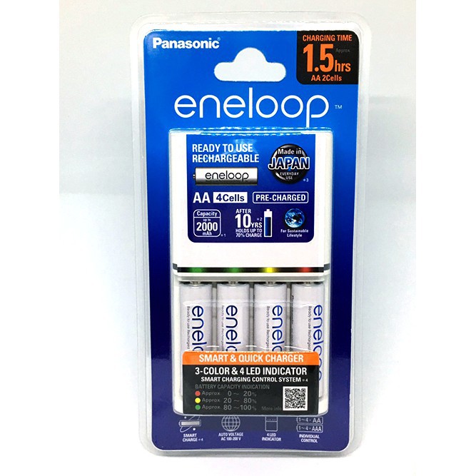 Bộ sạc nhanh , tự ngắt Panasonic Eneloop BQ-CC55 kèm 4 pin sạc 2000mAh