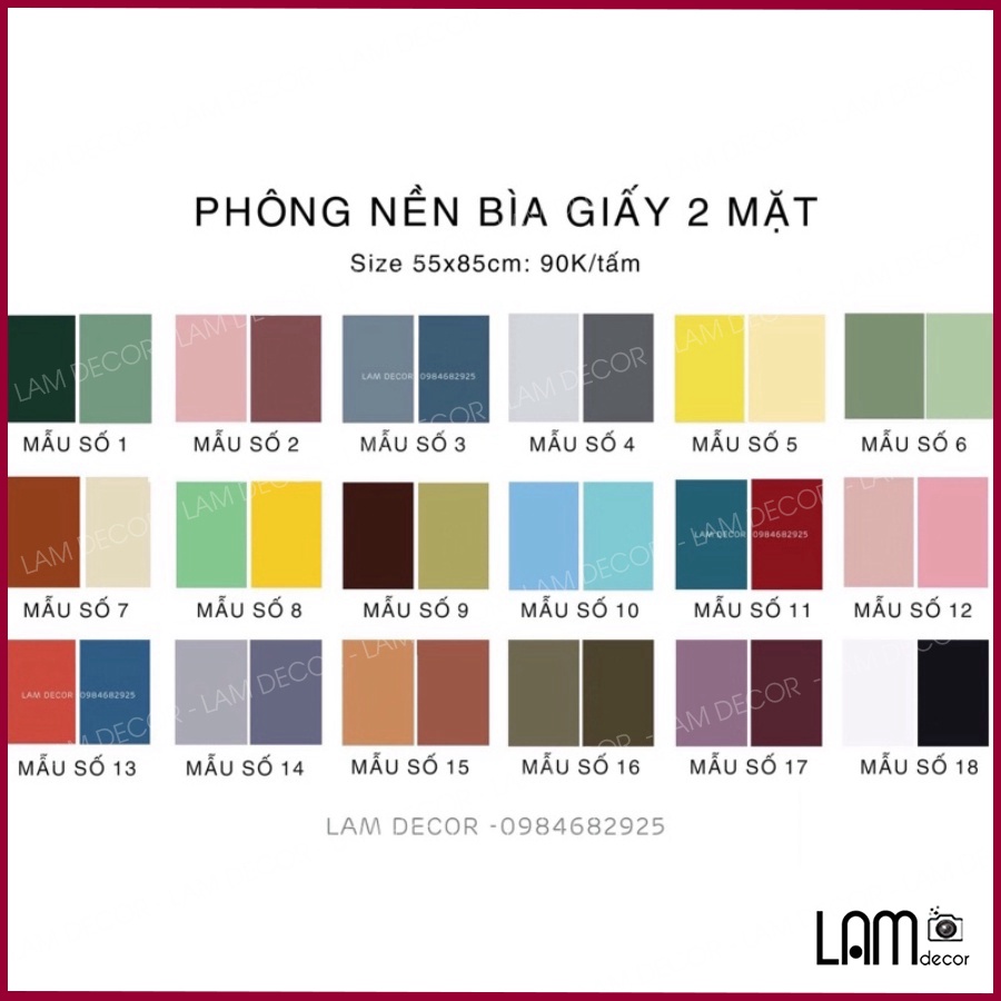 📌 Bề mặt giấy Couche cán mờ dễ dàng lau chùi. Mỗi mặt phông là 1 màu khác nhau cho bạn nhiều lựa chọn. Có thể ghép-phối 2 hoặc nhiều style bất kì để tạo hiệu ứng thị giác phù hợp với sản phẩm khi chụp.