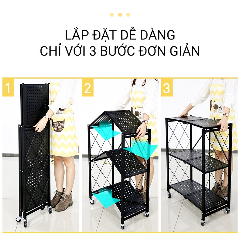 ✔️ Đầy đủ dụng cụ tiện ích: 1 Kệ gấp gọn, 4 Bánh xe, 1 Cờ - lê