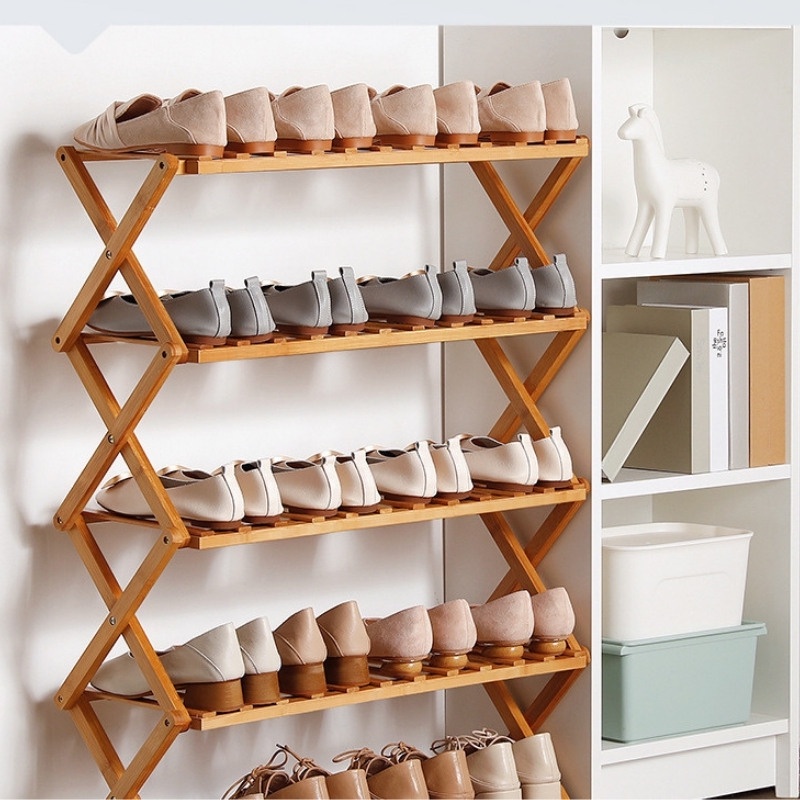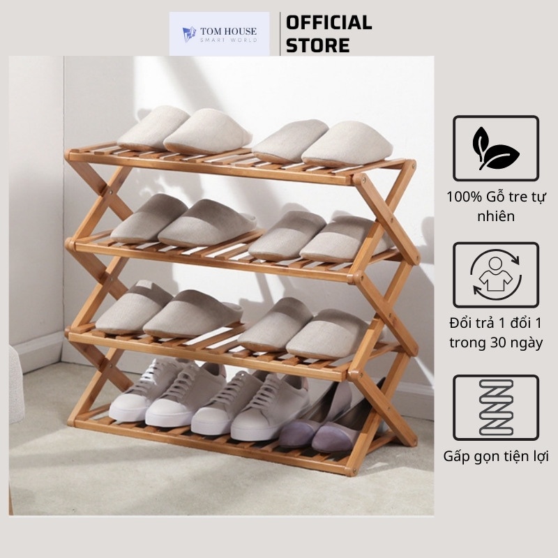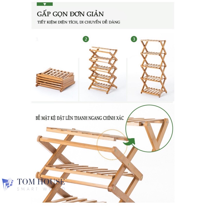 Kệ Để Giày Dép Nhiều Tầng Gỗ Tre, Gấp Xếp Gọn Nhẹ, Không Cần Lắp Ráp - Tomhouse