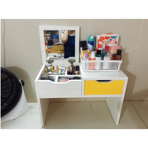 Bàn trang điểm không đơn thuần chỉ là nhu cầu mà còn là sở thích của chị em. Đâu nhất thiết phải sở hữu bộ bàn trang điểm đồ sộ, đôi khi chỉ cần một chiếc bàn trang điểm mini bệt cũng đủ để chị em chăm chút nhan sắc, biến mình trở nên xinh đẹp hơn, tự tin hơn khi bước chân xuống phố. Ngày hôm nay, hãy cùng Shop tìm hiểu về mẫu bàn trang điểm mini vô cùng dễ thương này nhé!