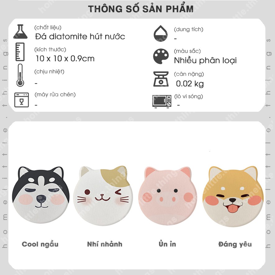Miếng lót ly, cốc làm bằng đá thấm hút nướcMiếng lót ly cốc sẽ đem lại sự tiện lợi cho người dùng hay uống nước lạnh, tránh mồ hôi của ly nước chảy xuống bàn trực tiếp