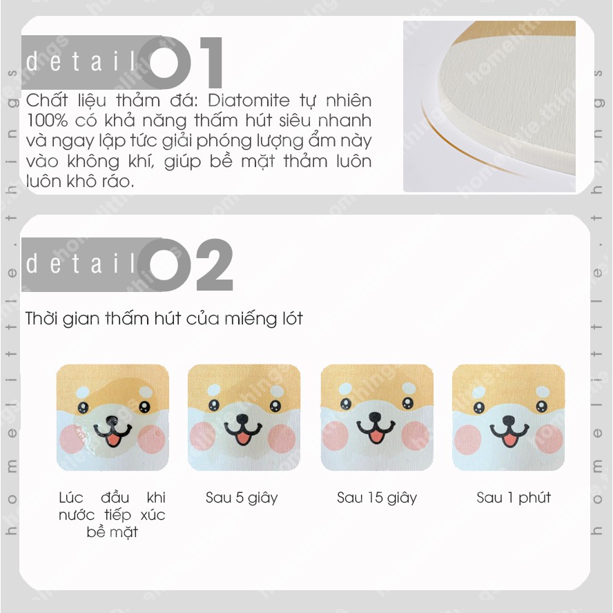 Miếng lót ly cốc bằng đá diatomite có khả năng thầm hút nước cực tốt, khi nước rơi xuống đế lót ly sẽ lập tức bị hút, giữ cho bề mặt luôn khô ráo