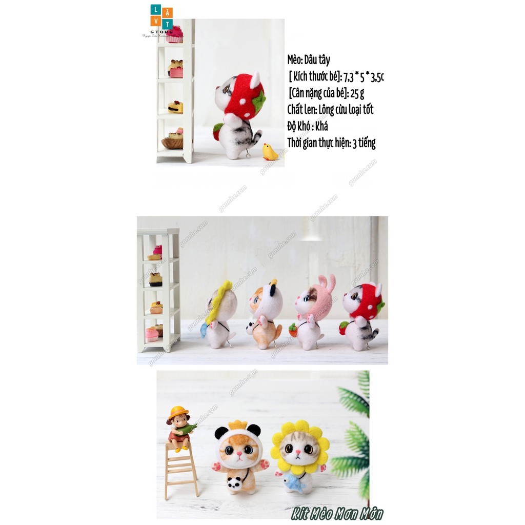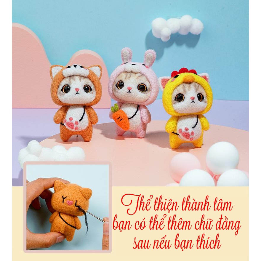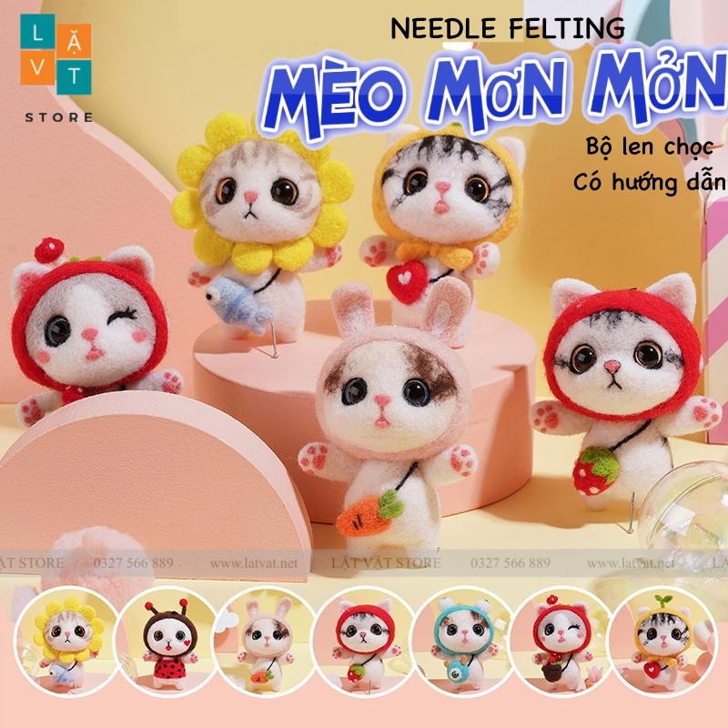 Sở thích & Sưu tầm > Dụng Cụ May Vá || Bộ len chọc có hướng dẫn Mèo Mơn Mởn - Kit chọc len làm quà tặng, needle felting catCòn hàng