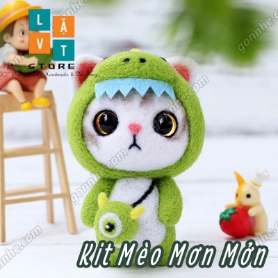 Bộ len chọc có hướng dẫn Mèo Mơn Mởn - Kit chọc len làm quà tặng, needle felting cat