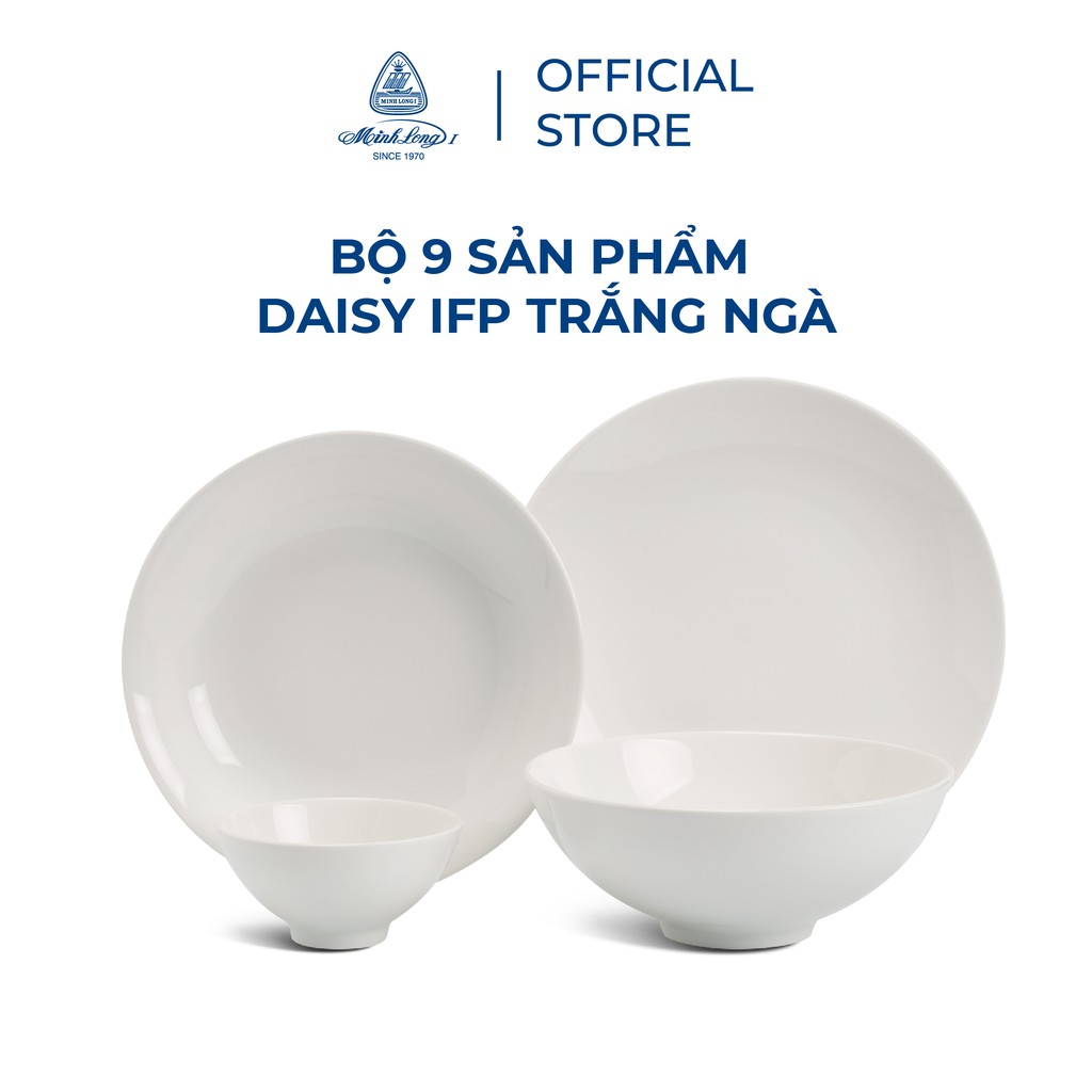 Bộ chén dĩa Minh Long 9 sản phẩm Daisy IFP Trắng ngà