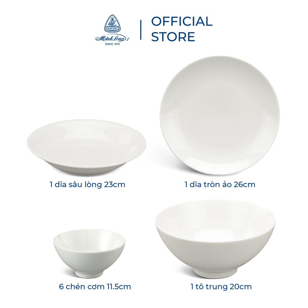 Nhà cửa & Đời sống > Bộ đồ bàn ăn > Tô || Bộ chén dĩa Minh Long 9 sản phẩm Daisy IFP Trắng ngàCòn hàng