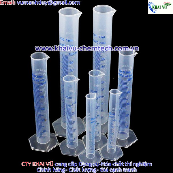 Giới thiệu Ống đong NHỰA chia vạch xanh, chịu nhiệt đong thể tích 10ml 25ml 50ml 100ml 250ml