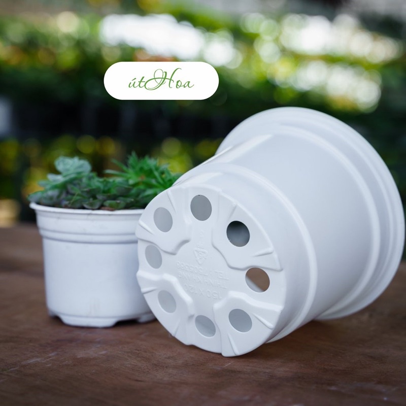 [Sỉ từ 20 cái Chậu nhựa trắng T15 (15x12.5 cm) trồng cây, trồng hoa nhựa cao cấp
