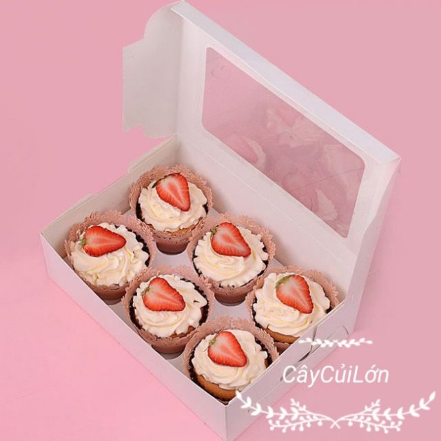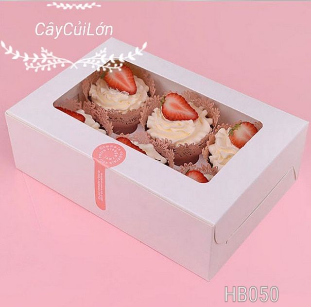 Hộp cupcake 6 bánh với tông màu trắng đơn giản sang trọng giúp chiếc bánh của bạn thêm nổi bậc, đặc biệt hơn là làm nổi bậc logo riêng của shop bạnKích thước 24x16x7.5cm