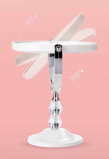 Gương trang điểm để bàn , gương soi cho shop trang sức phụ kiện- Gương pha lê trắng : Chất liệu nhựa PS bóng đẹp , 2 mặt gương , 1 mặt thường , 1 mặt x3 , xoay 360*