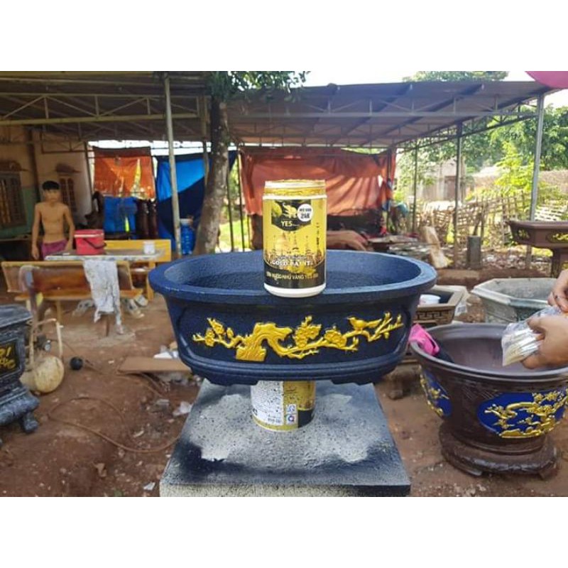 9. Sơn chậu. Lần đầu cho khô rồi quét lần hai, chờ khô rồi vẽ họa tiết, chờ khô rồi phủ bóng.
