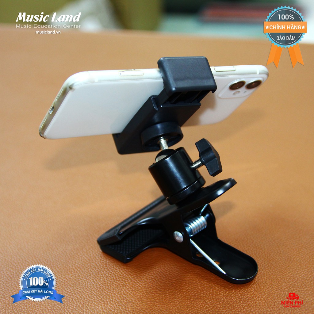 - Giá kẹp điện thoại gắn trên đàn Guitar có đế để điện thoại lớn cần kẹp chắc chắn, kẹp được tất cả các loại điện thoại trên thị trường hiện nay như : Iphone, Samsung, Oppo…