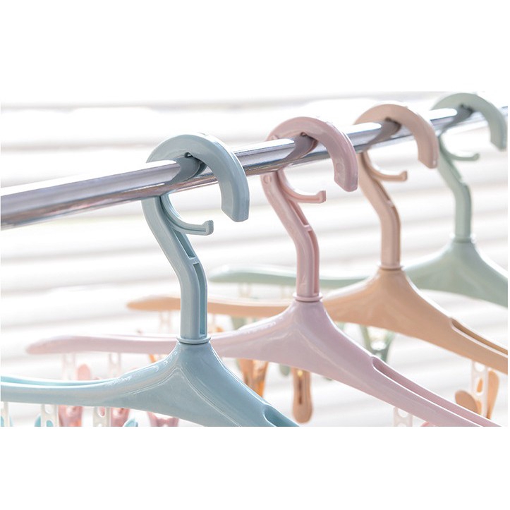 Đây là loại móc treo quần áo có 8 kẹp giúp bạn có thể treo nhiều đồ như tất, quần áo sơ sinh, trẻ con, đồ lót,…