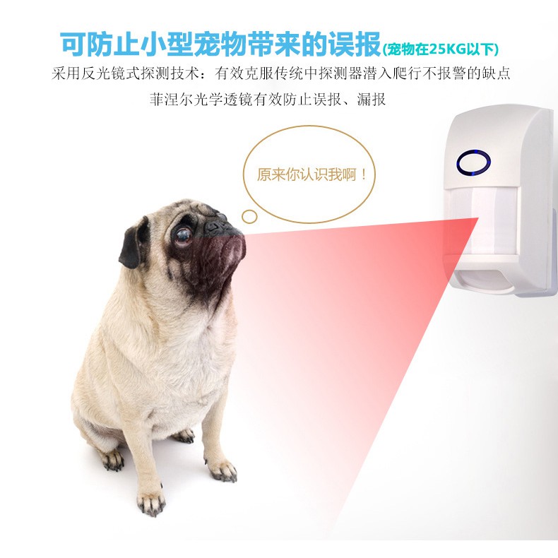 - Có thể phân biệt được giữa các tín hiệu nhiễu với tín hiệu chuyển động cơ thể, ngăn chặn báo động giả từ thú nuôi trong nhà có trọng lượng dưới 25kg.