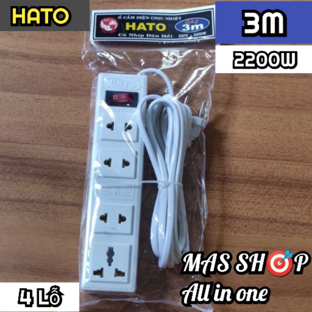 Thiết Bị Điện Gia Dụng > Mạch điện & Phụ tùng > Ổ cắm điện & Dây nối || Ổ cắm điện chịu tải 4 lỗ HATO, dây 3M, công suất 2200WCòn hàng