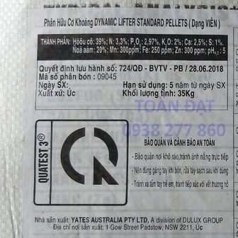 - Yate Dynamic Lifter là phân hữu cơ phổ biến nhất ở Úc.Sản xuất từ phân gà đã được cô đặc và xử lý ở nhiệt độ cao nhằm tiêu diệt mầm móng cỏ dại trong nguồn phân chuồng