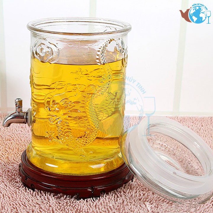 Bình Ngâm Rượu Thủy Tinh 8 Lít Có Van Dáng Trụ Hoa Văn Rồng