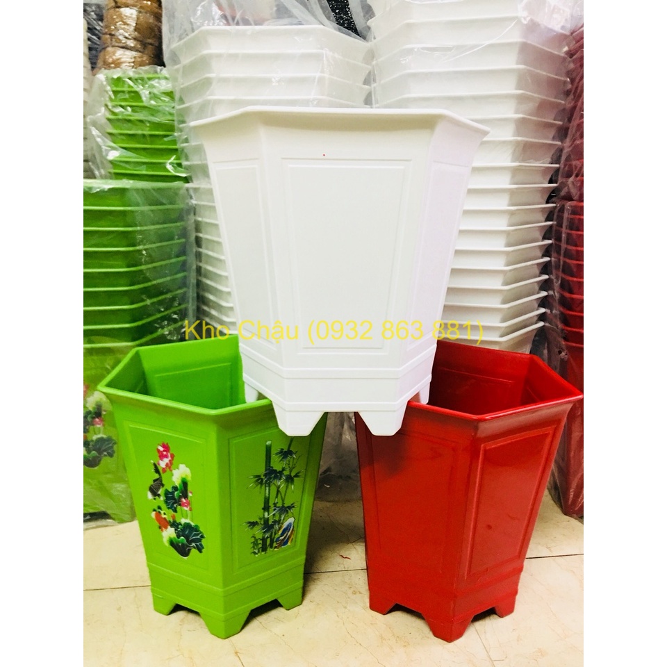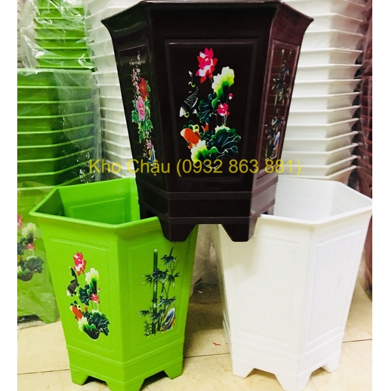 Combo 2 Chậu Nhựa Lục Giác Dáng Cao, Chân Cao Thoát Nước Tốt (kt: 35x35x24)CÓ 2 LOẠI: IN NHIỆT và không in