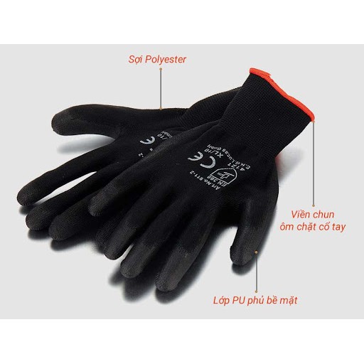Cấu tạo: sợi polyester, lòng bàn tay phủ nitrile