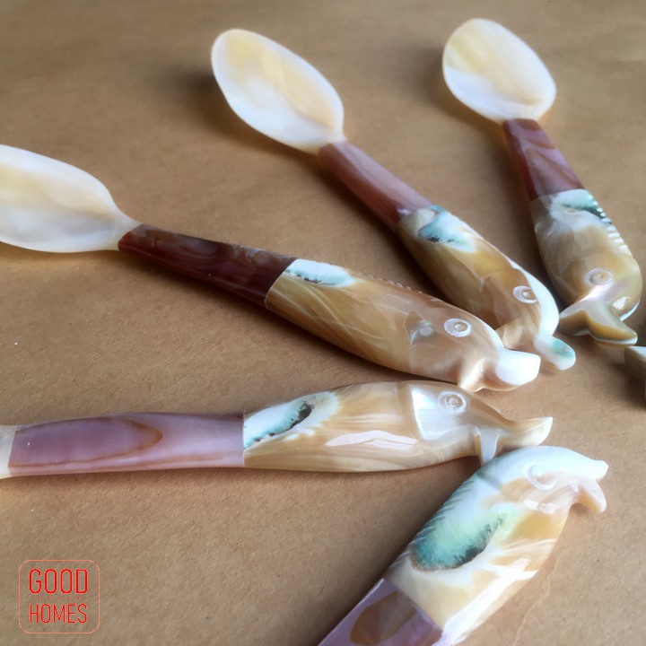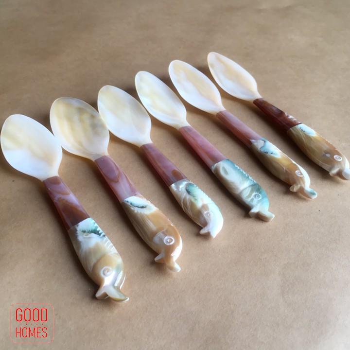 THÌA NĨA "NGỌC TRAI" LÀM TỪ VỎ ỐC BIỂN XÀ CỪ - THÌA NĨA CAO CẤP XUẤT KHẨU.1. Thìa cán hình cá: Dài 15 cm - Mã hàng: THÌA CÁ