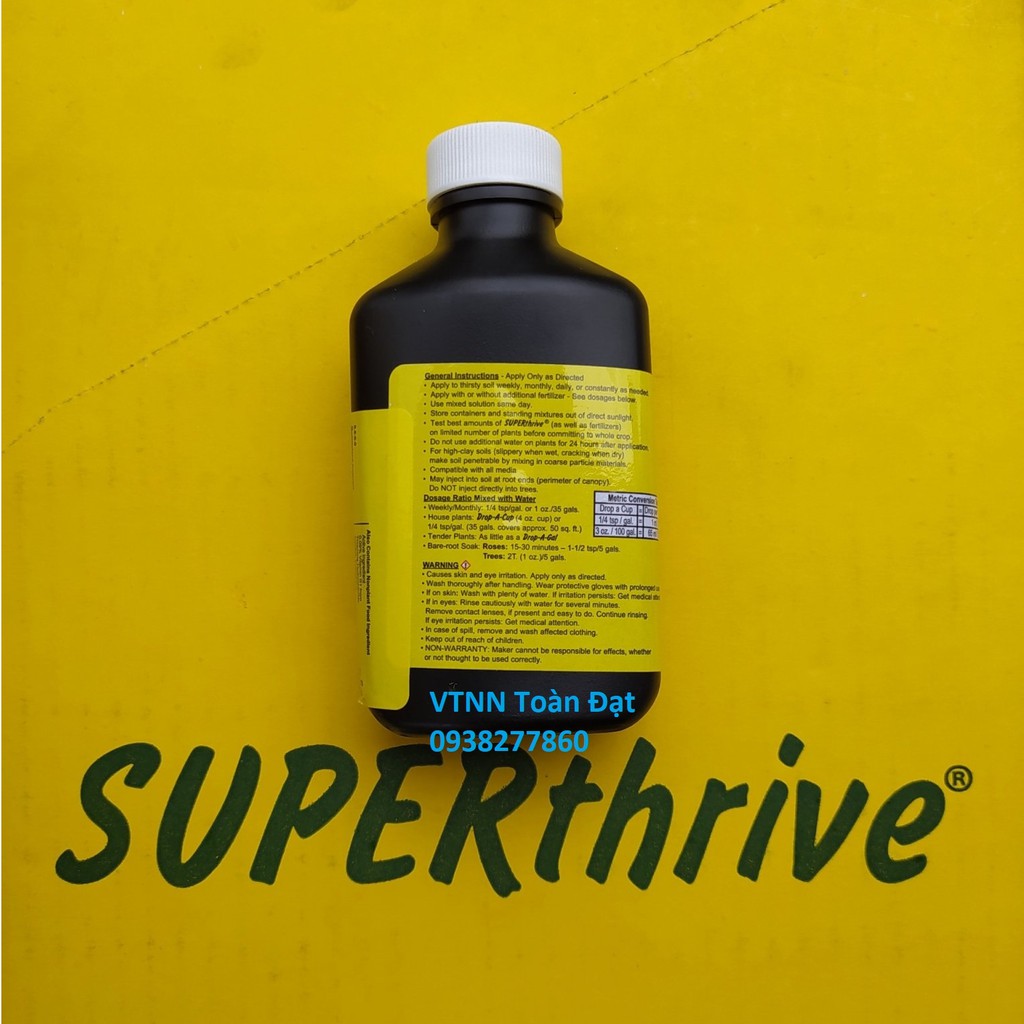 SuperThrive Có thành phần là các chất vitamins và các hormon thực vật kích thích tăng trưởng cho cây trồng