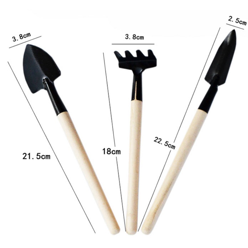 Bộ dụng cụ mini làm vườn 3 món gọn nhẹ làm vườn gồm, 1 xẻng, 1 xúc, 1 cào, sử dụng tiện lợi, kiểu dáng đẹp, nhỏ gọn. Chất liệu thép không gỉ, chiều dài đầu kim loại 9cm, tay cầm dài 15cm.