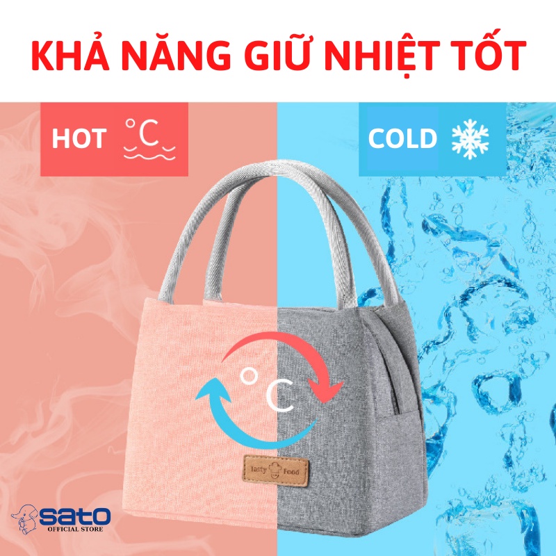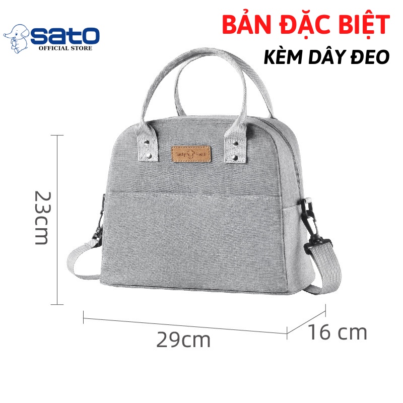 Túi đựng thực phẩm Sato Store phân phối là chiếc túi đựng hộp cơm và thức ăn cỡ lớn được sản xuất từ chất liệu vải Oxford chống thấm nước rất hiệu quả. Phía trong túi có lót thêm lớp bông giúp làm tăng hiệu quả giữ nhiệt cho đồ ăn. Đây là chiếc túi có kích thước khá lớn, chia thành nhiều ngăn, rất tiện lợi đựng hộp cơm, hoa quả, đồ uống. Với thiết kế đơn giản nhưng lại hợp lý, sản phẩm đã làm hài lòng rất nhiều khách hàng. Sản phẩm có màu đen kèm họa tiết đơn giản tạo ra cảm giác sang trọng cho người sử dụng. Túi đựng hộp cơm có quai xách được may gia công chắc chắn. Sức chứa của túi lớn, có thể mang đồ ăn cho 2 người.