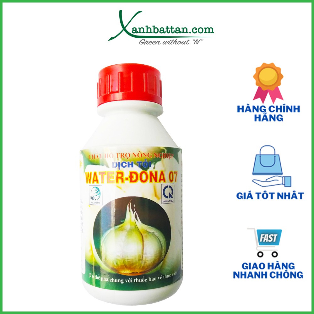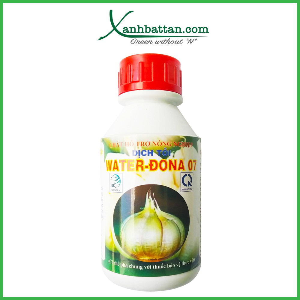 ► Dịch Tỏi Diệt sâu Bệnh Hại Cây trồng Water Dona 07 là chất hổ trợ nông nghiệp, sản phẩm không độc hại, chỉ dùng cho cây trồng. Dịch tỏi được chiết xuất tỏi tươi và xả tươi cộng với một số thành phần hữu cơ an toàn cho người sử dụng và vật nuôi. Sản phẩm có công dụng xua đuổi côn trùng gây hại bằng đặc tính của xả và tỏi, đặc biệt, trong tỏi còn có hàm lượng kháng sinh tự nhiên có tác dụng giảm thiểu lượng vi sinh gây hại bám trên rau màu, lượng vi sinh này vừa làm mất an toàn cho rau thực phẩm của bạn và còn là nguồn gây bệnh cho cây trồng của bạn.