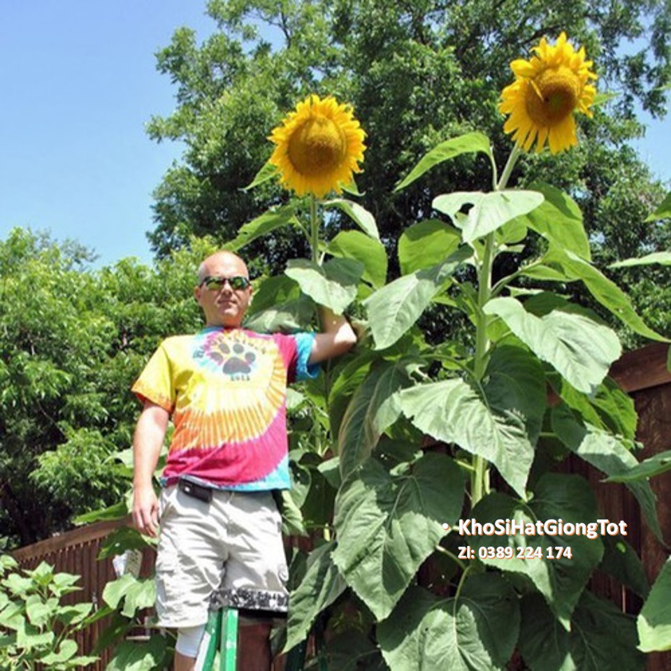 Cây khổng lồ 240 - 300 cm cho hoa to tới 35 cm, đầy ắp những hạt Hướng Dương nhiều chất dinh dưỡng: 24% protein, nhiều chất khoáng hơn hết thảy các loại thực phẩm trừ lòng đỏ trứng gà và gan động vật. Đây chinh là loại cây mà bạn đang muốn gây ấn tượng cùng hàng xóm hay bạn bè mình.