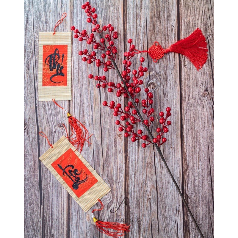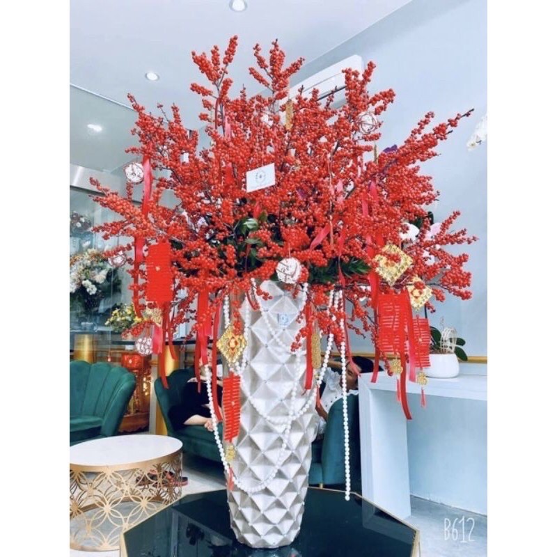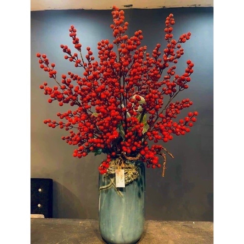 Cành Chery/ đào đông nhiều nhánh nổi bật với những chùm quả đỏ giúp cho không gian của bạn trở nên tươi vui, ngập tràn không khí.