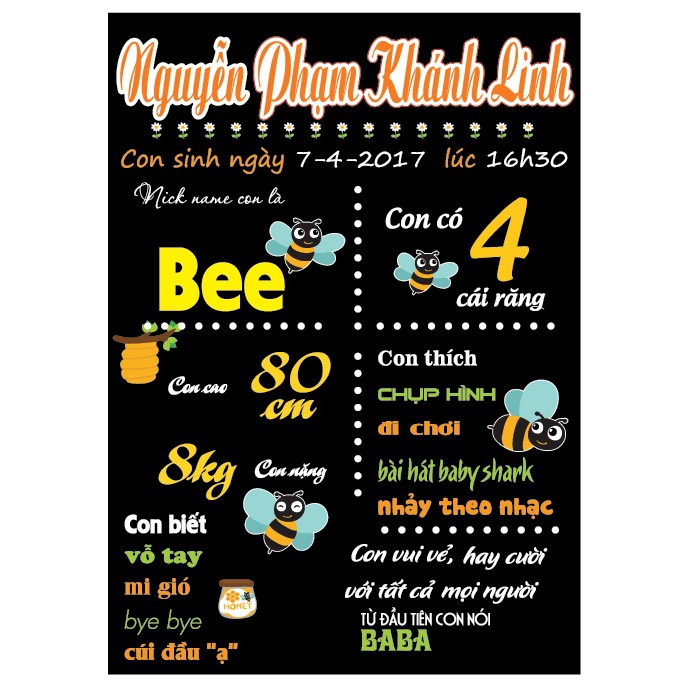 HaBidecor giới thiệu bảng thông tin cho bé trang trí sinh nhậtKích thước: 30×42cm