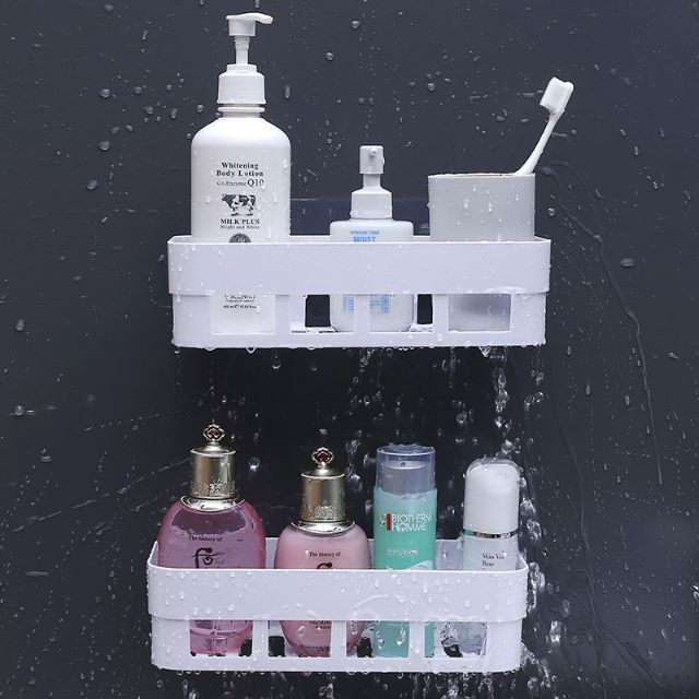 ( đã kèm móc dính tường) kệ đựng đồ nhựa đa năng dùng trong nhà bếp, nhà tắm