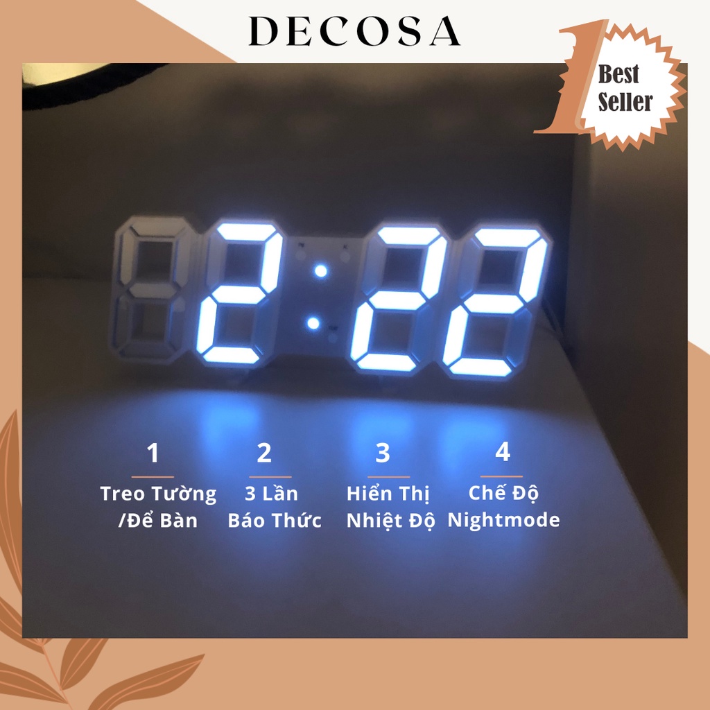 Nhà cửa & Đời sống > Trang trí nhà cửa > Đồng hồ || Đồng hồ led 3D để bàn treo tường thông minh DECOSACòn hàng