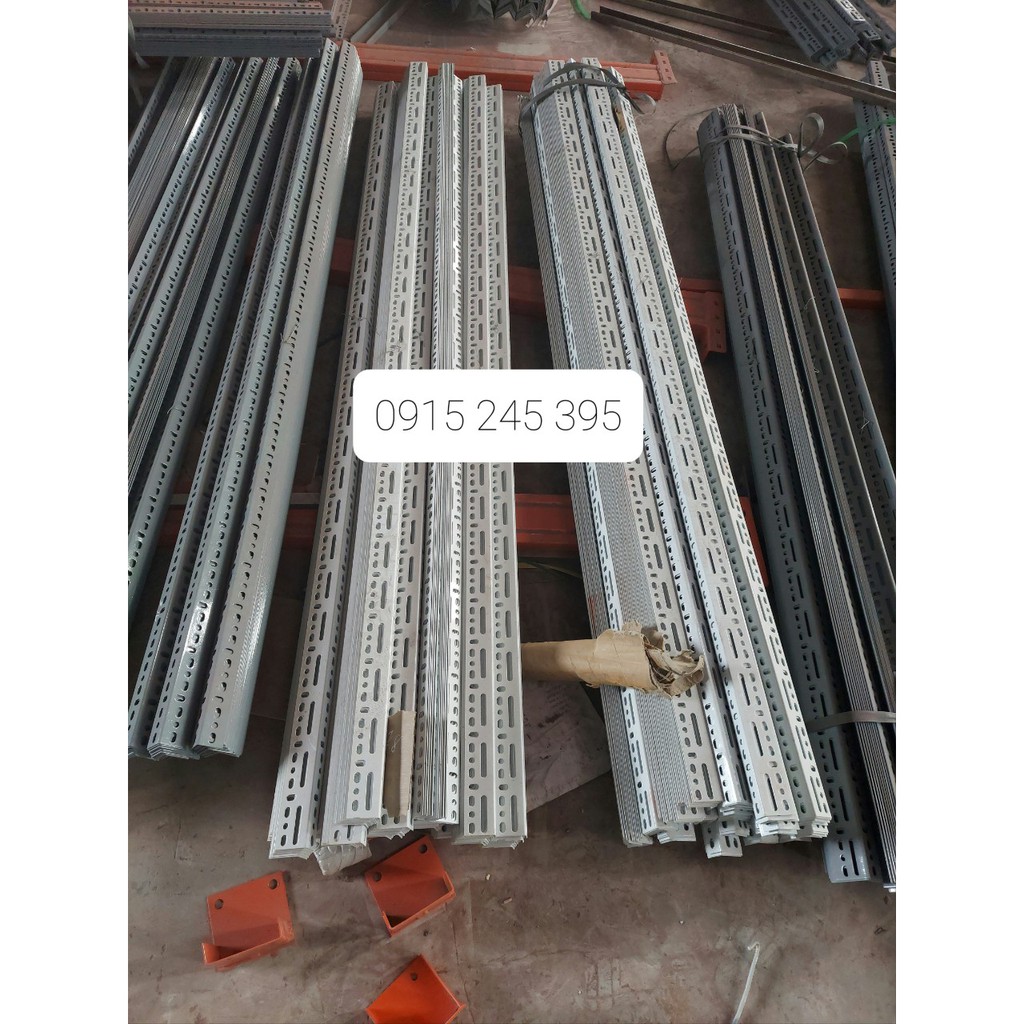 • Khung kệ : Được thiết kế định hình, dạng V có khả năng chịu tải 1000kg/khung, kết cấu của khung gồm các thanh giằng ngang, bulon, chân đế. Trên thân khung có các lỗ cách đều nhau nên dễ dàng điều chỉnh khoảng cách giữa các tầng cao hay thấp, sơn tĩnh điện màu ghi xám.